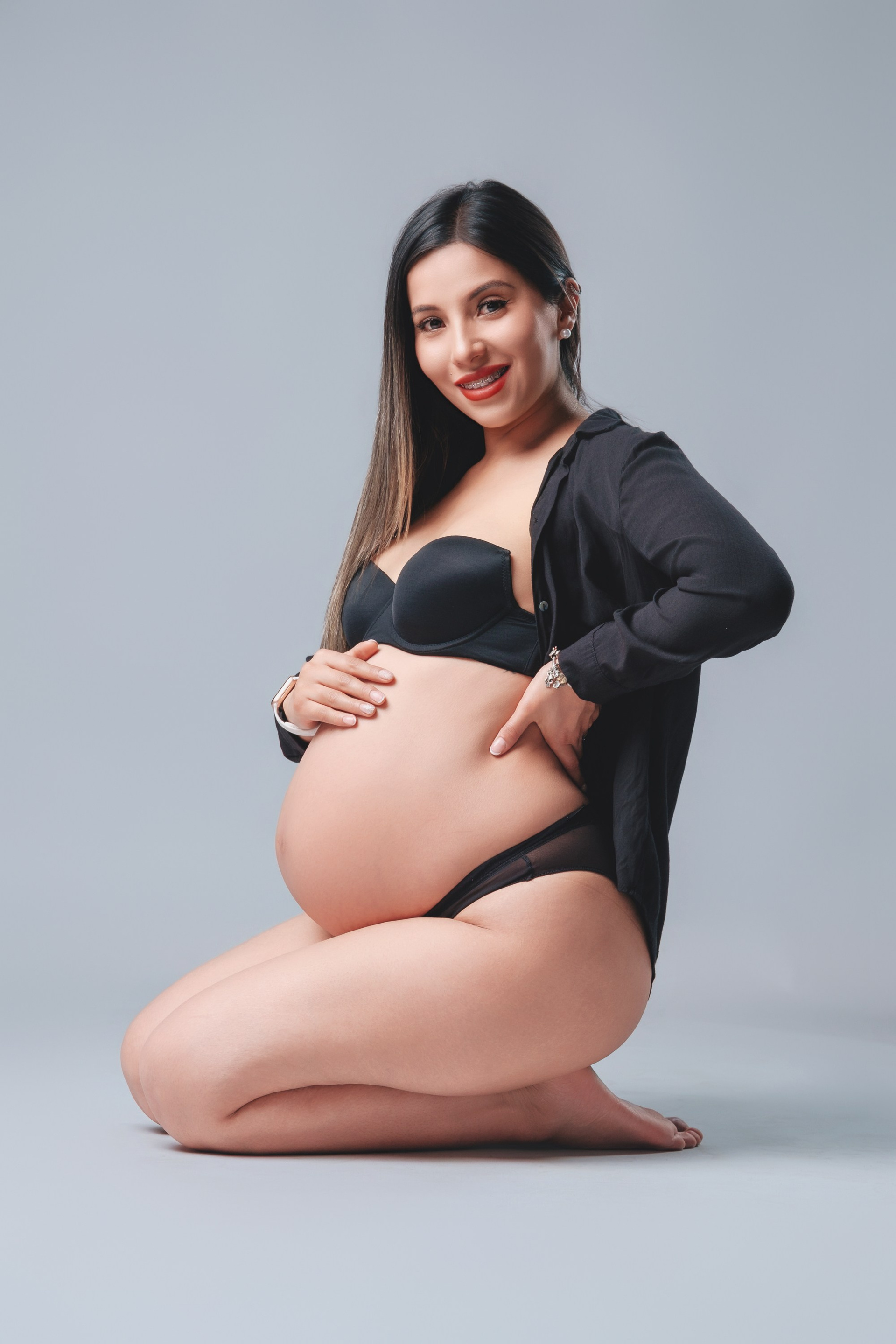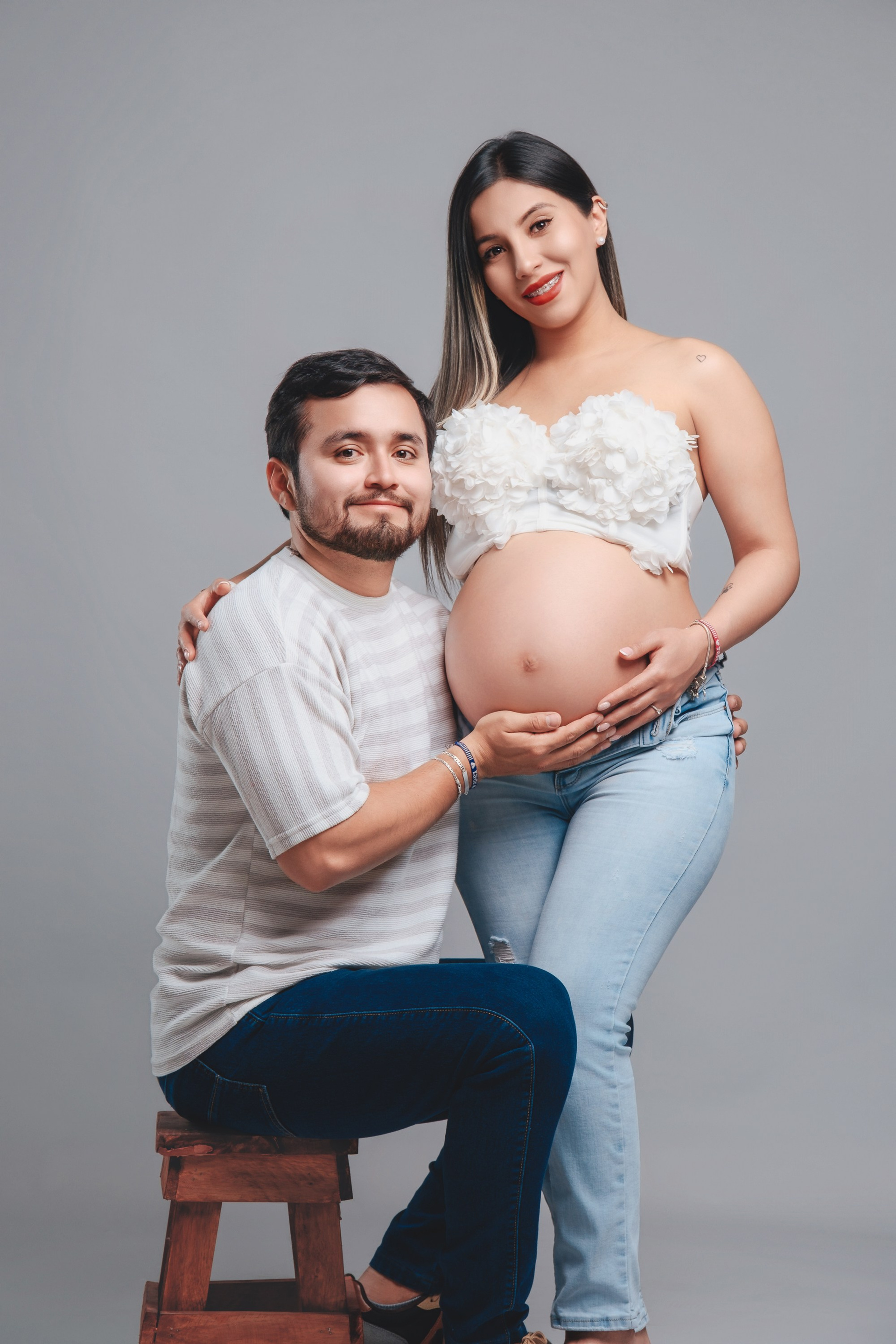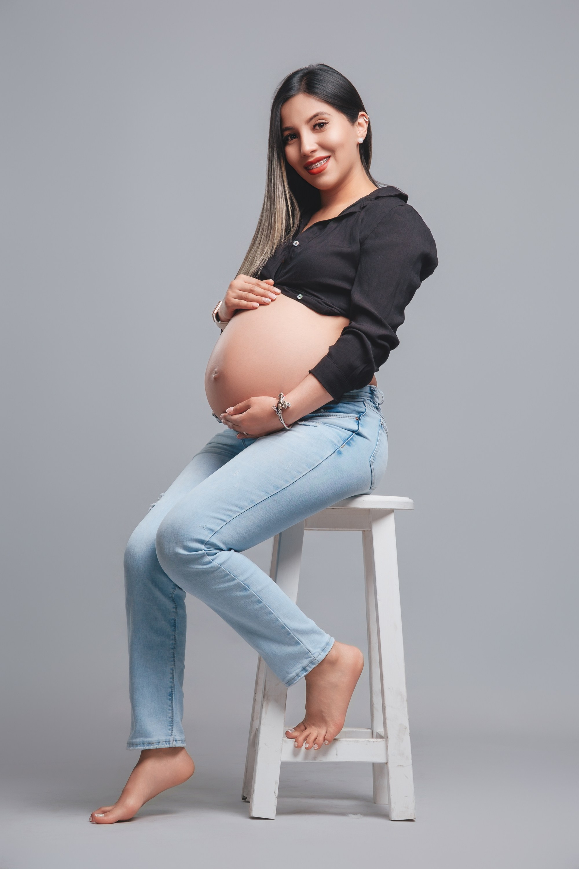 Sesión de fotos de embarazo en estudio.