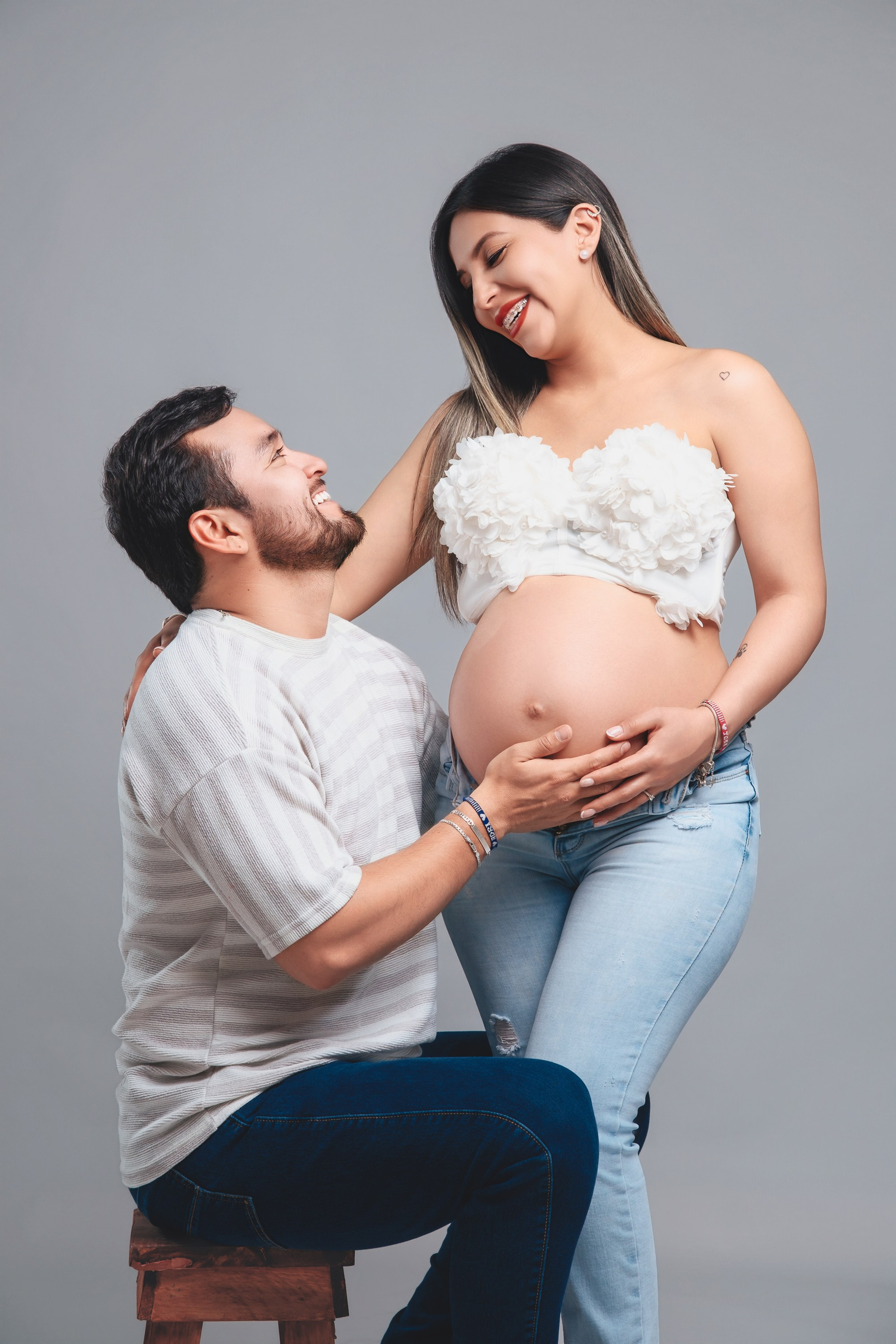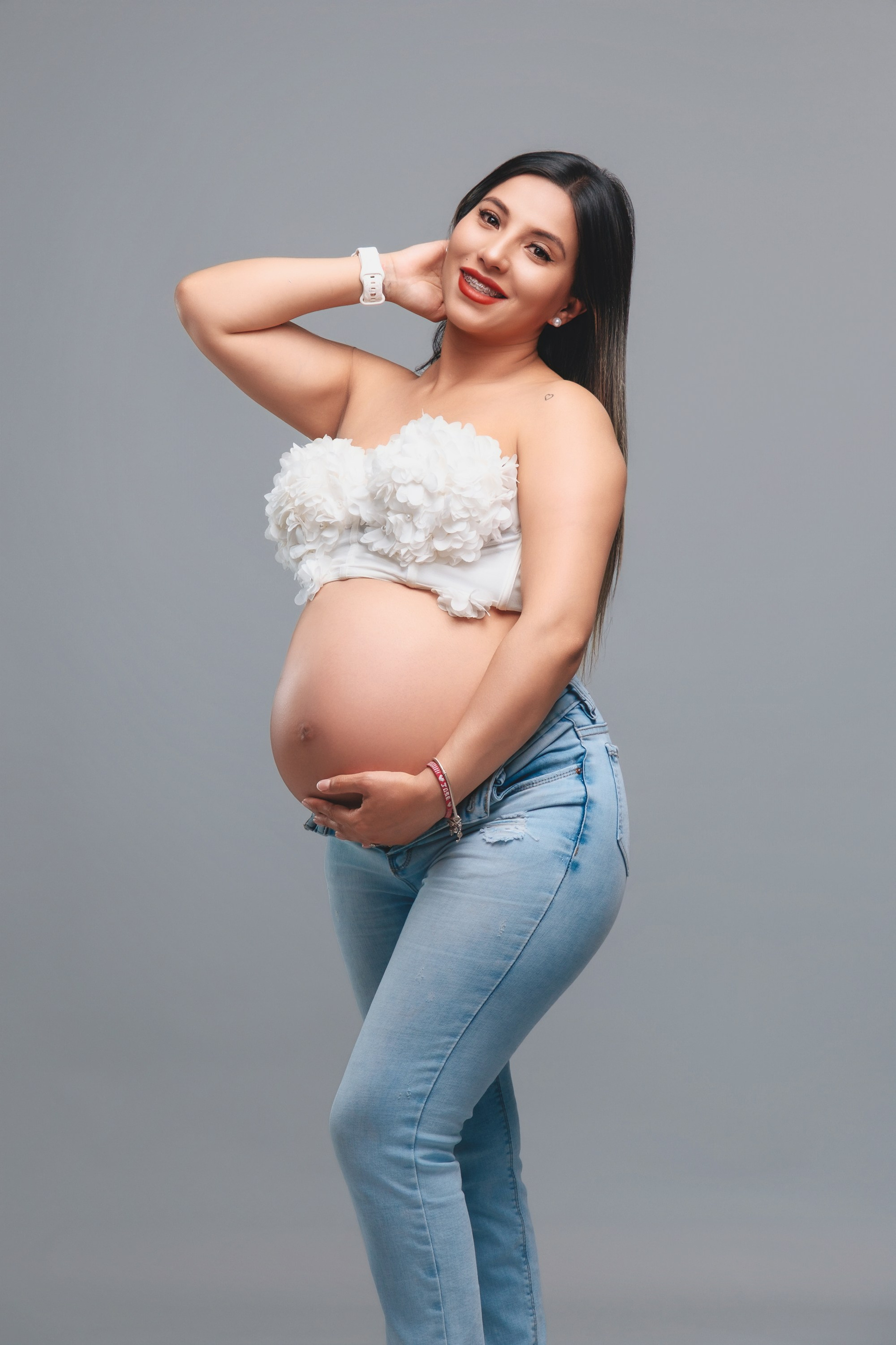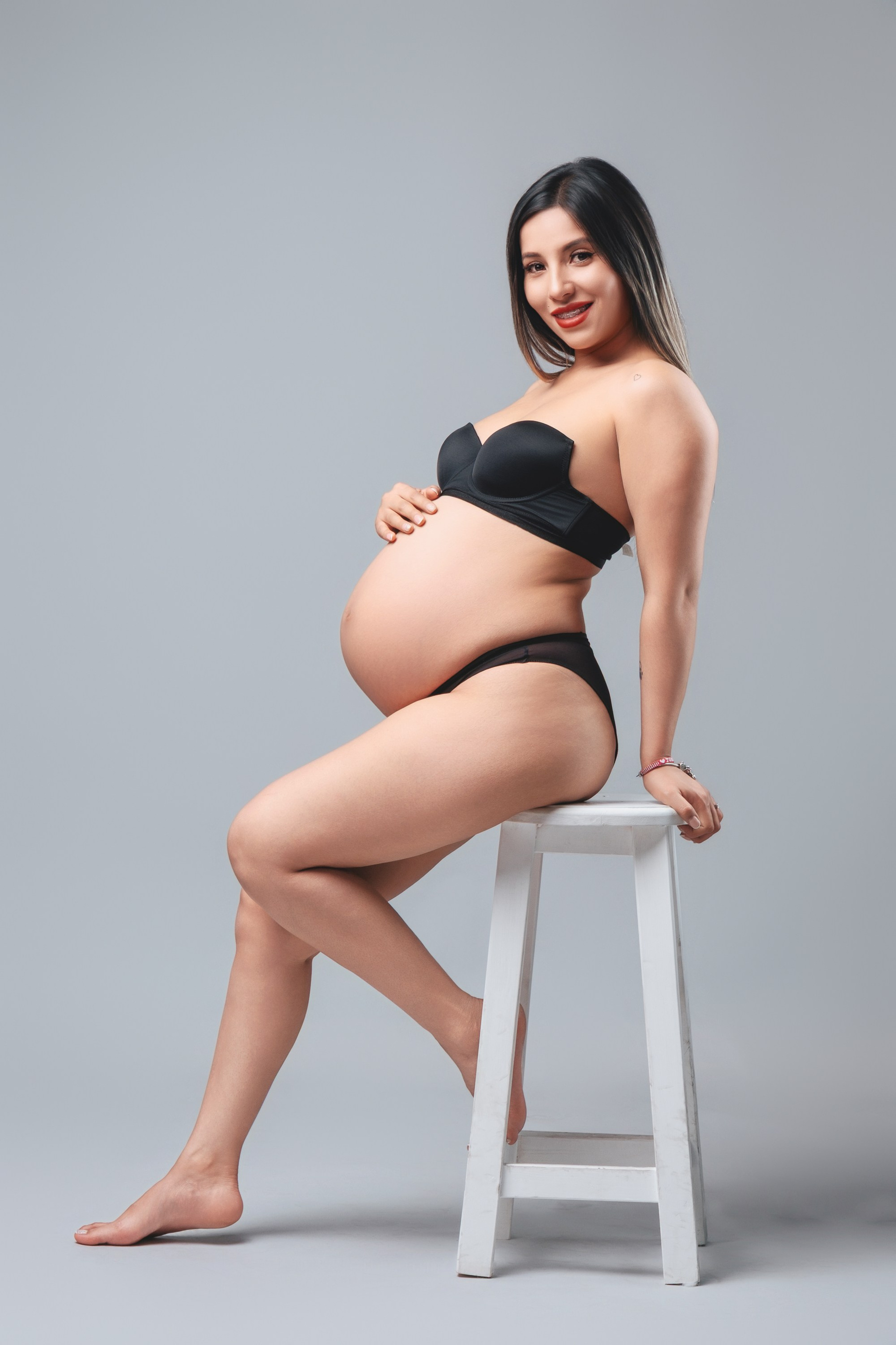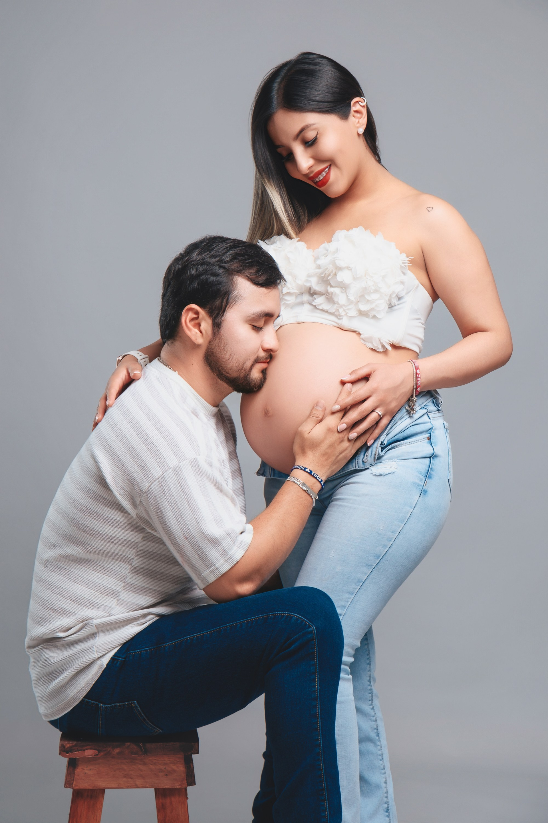 Sesión de fotos de embarazo en estudio.